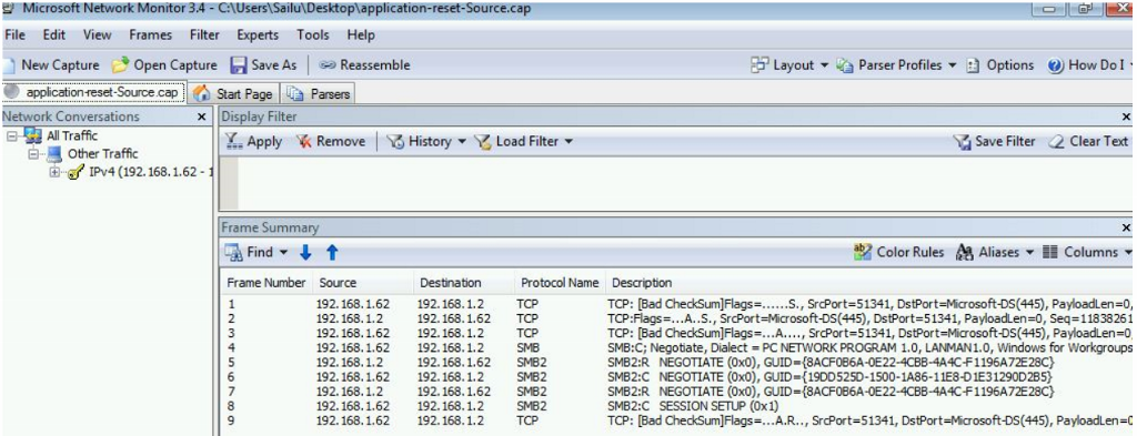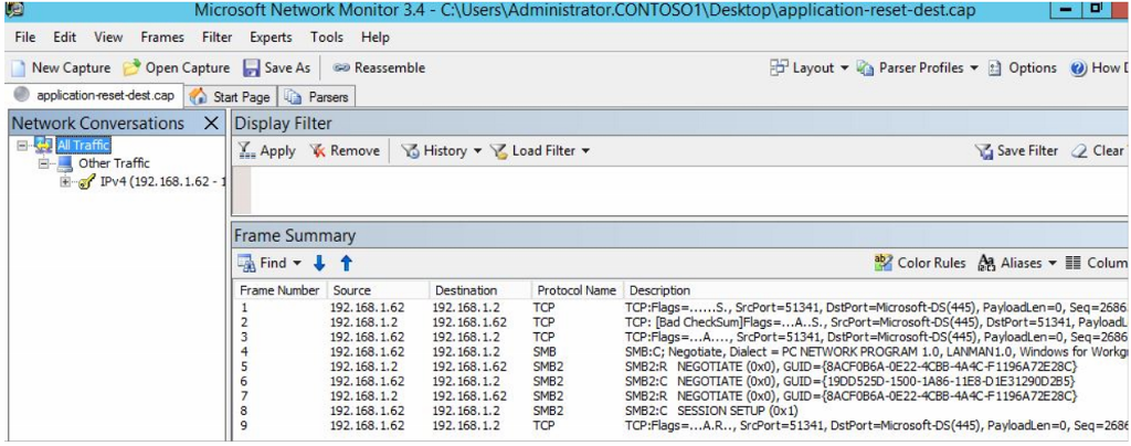 Если вы определили, что сбросы не вызваны переназначением или неправильным параметром или пакетами, которые будут изменены с помощью сетевого следа, сузить его до сброса уровня приложения.
