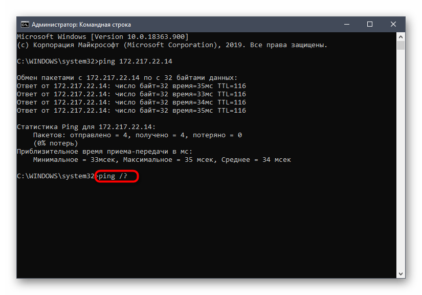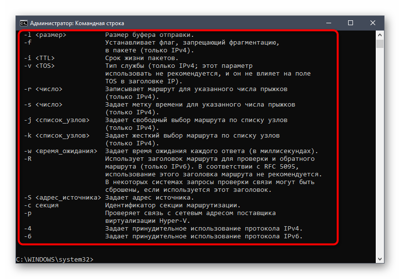Ознакомьтесь со списком доступных аргументов, а далее остается только применять их в основной строке пропинговки, чтобы задать необходимые параметры.