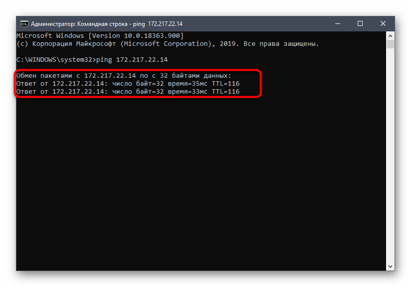 В операционной системе Windows есть целых две консольных утилиты, которые позволяют проверить доступность IP-адреса. Самая часто используемая называется ping и дает возможность проверить, насколько стабильно происходит обмен пакетами между указанным адресом и компьютером пользователя. Для ее применения потребуется выполнить такие действия: