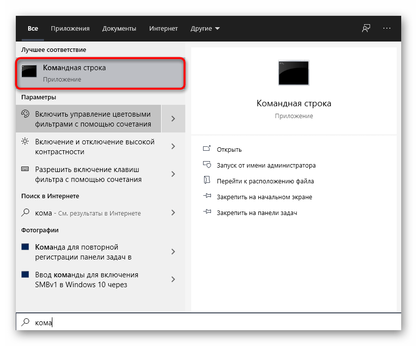 - Откройте «Пуск» и запустите «Командную строку», отыскав ее через поиск. Перейти к консоли можно и любым другим удобным образом.