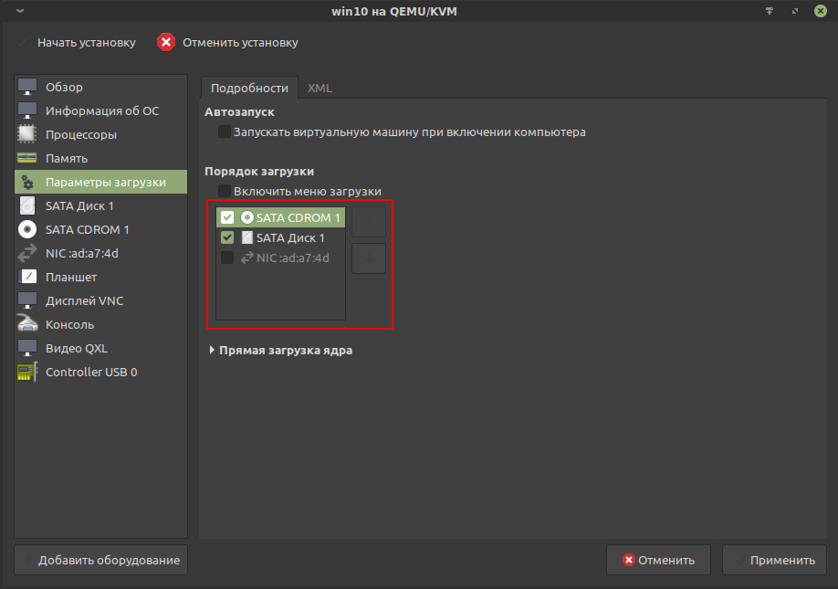 - network-bridge — сетевой мост, который мы настроили ранее;