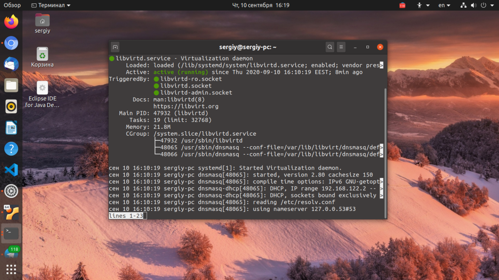 Затем убедитесь, что сервис libvirt запущен и работает: