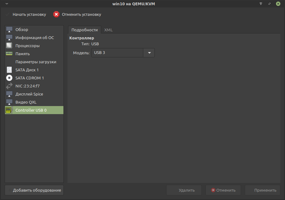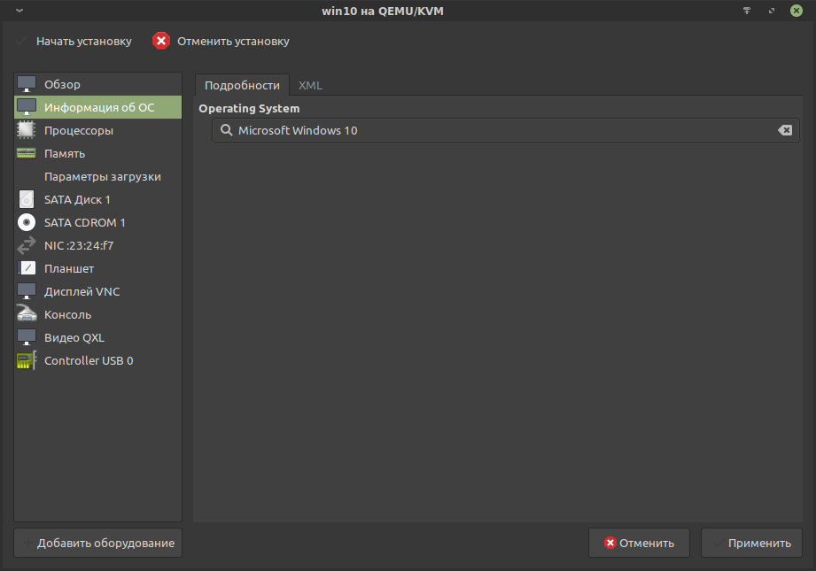 Убедиться, что выбрано Windows 10, так как это подтягивает мета-информацию, которая влияет на доступные настройки Virt-manager и libvirt.