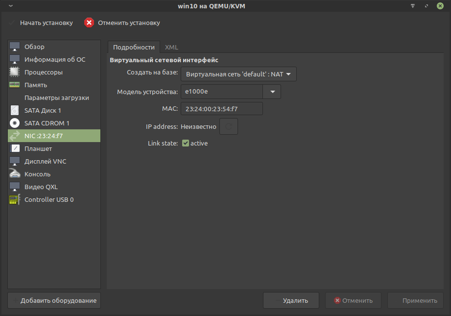 Запоминаем и идём на хост машину. Вытаскиваем mac-адрес «сетевой» карты виртуалки: