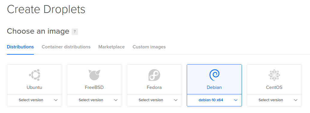 Выбираем Debian самой последней версии: