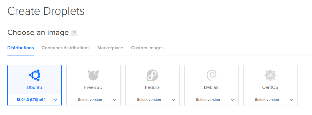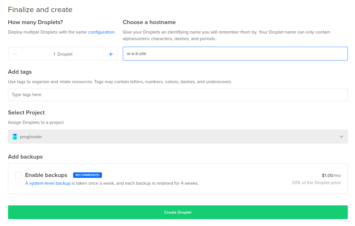 Начать нужно с создания нового дроплета: