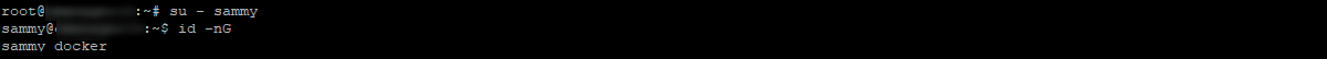 Продолжить работу можно будет после ввода пароля пользователя. Проверить, что добавление пользователя прошло успешно, можно командой (пользователь sammy):