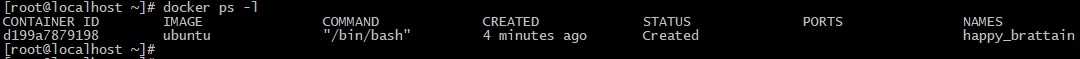Определить идентификатор или имя можно при помощи команды ps. Опция «–l» означает последний запущенный контейнер: