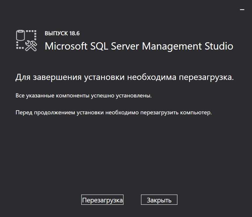 Процесс установки среды SQL Server Management Studio будет завершен, когда программа выдаст соответствующее сообщение.