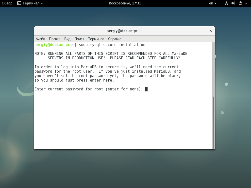 Как я уже говорил, в качестве основной базы данных мы будем использовать mariadb. Чтобы начать ее настройку выполните:
