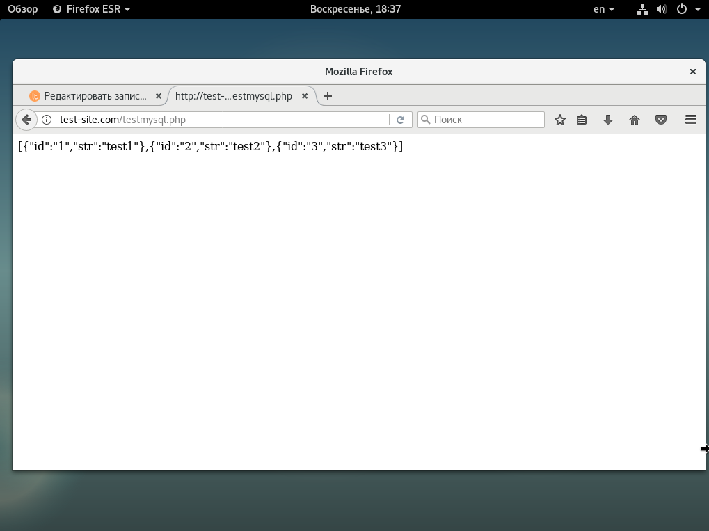 Теперь, чтобы убедиться что все работает, мы попытаемся получить данные из mysql через PHP. Для этого создадим небольшой скрипт. Он будет подключаться к базе данных и читать по порядку записи из таблицы: