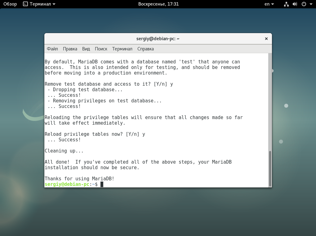 Настройки MySQL Debian завершены, можно переходить к использованию.