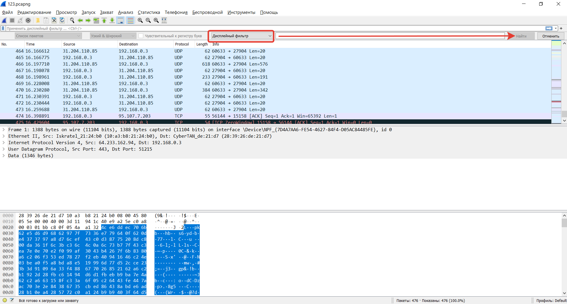 - Фильтры. Задают критерии исключения и включения в анализируемую подборку пакетов. Чем больше анализируемый дамп, тем детальнее фильтруется информация. Это упрощает работу с потоком данных и снижает риски механических ошибок пользователя.
