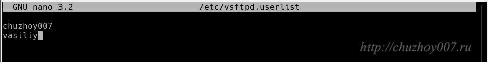 $ sudo nano /etc/vsftpd.userlist