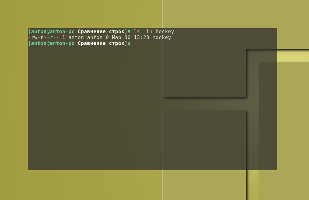 Как видно, один лишь символ “больше” в своём непосредственном виде привёл к неправильным результатам, хотя и не было сформировано никаких ошибок. В данном случае этот символ привёл к перенаправлению потока вывода, поэтому никаких синтаксических ошибок не было обнаружено и, как результат, был создан файл с именем hockey: