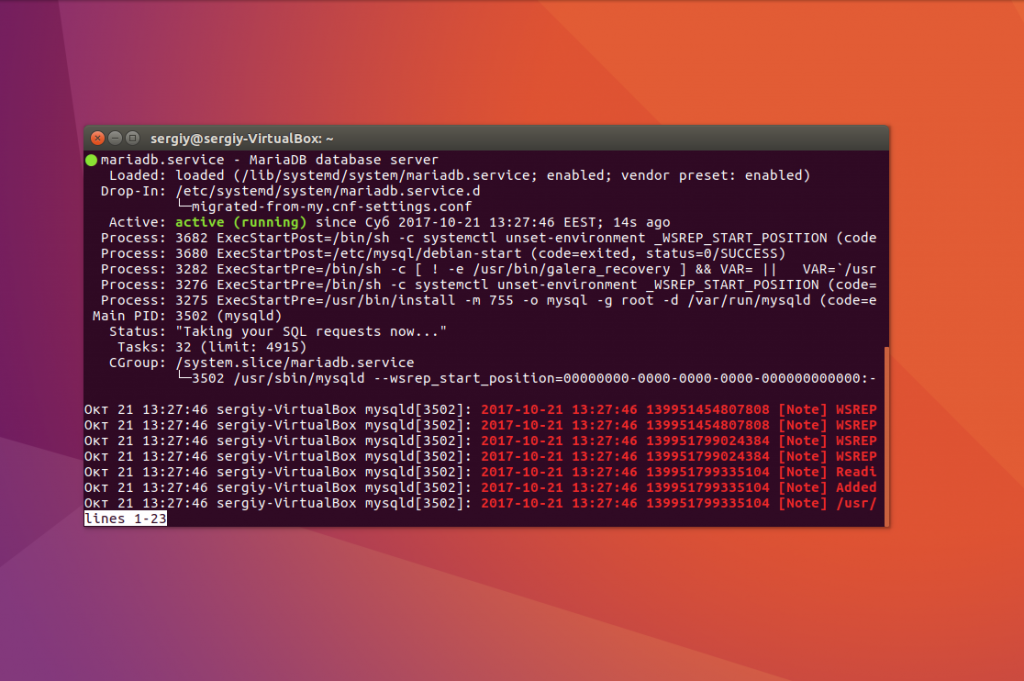 И выводим состояние работы СУРБД: