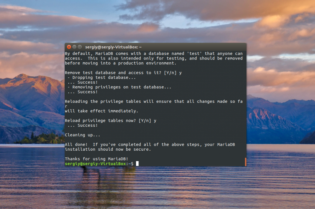 Введите временный пароль root и ответьте (да) на все вопросы.