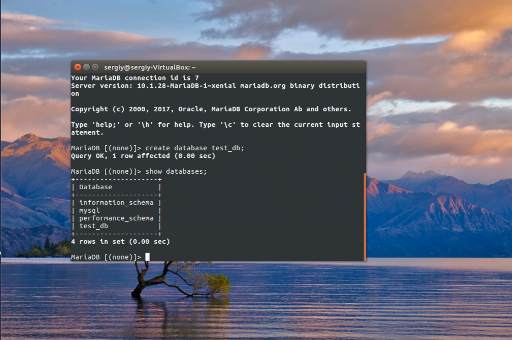 Чтобы убедиться, что все работает должным образом, мы создадим новую базу данных на главном сервере: