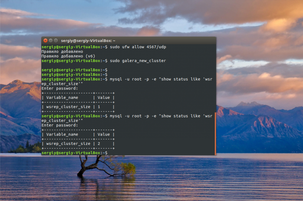 Как видите, действительно база данных автоматически появляется на другой машине. Репликация данных mysql работает.