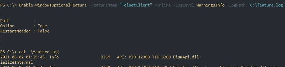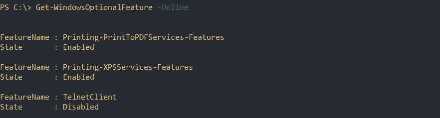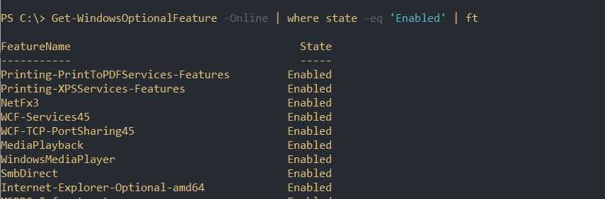 Установка компонентов с Enable-WindowsOptionalFeature