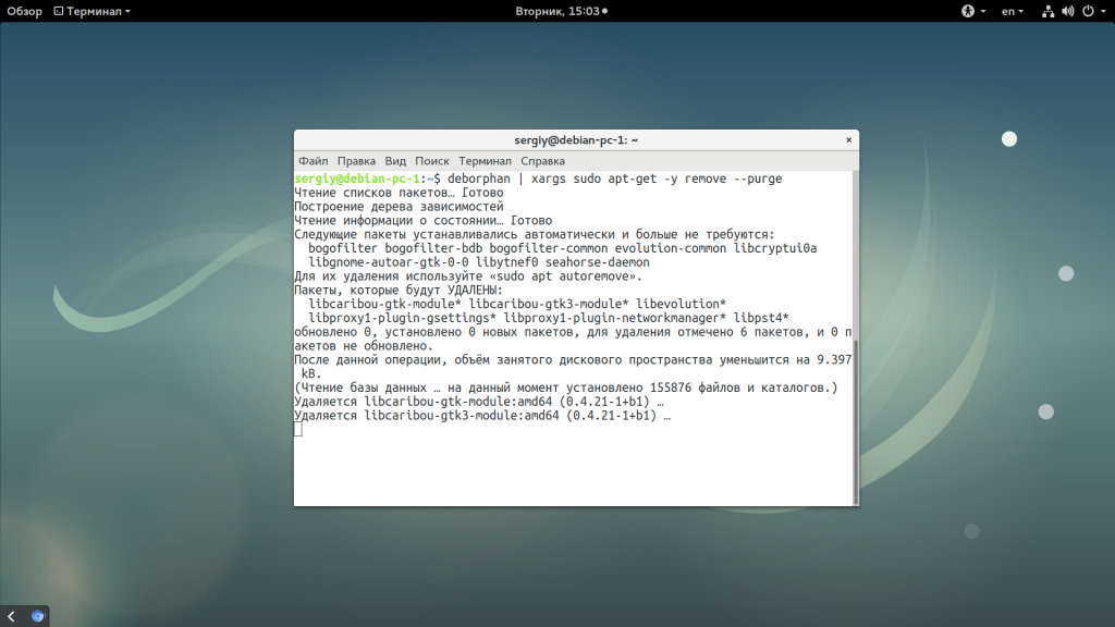А чтобы выполнить удаление пакетов debian, которые больше не нужны после установки используйте опцию —auto-remove, она аналогична запуску apt с командой autoremove: