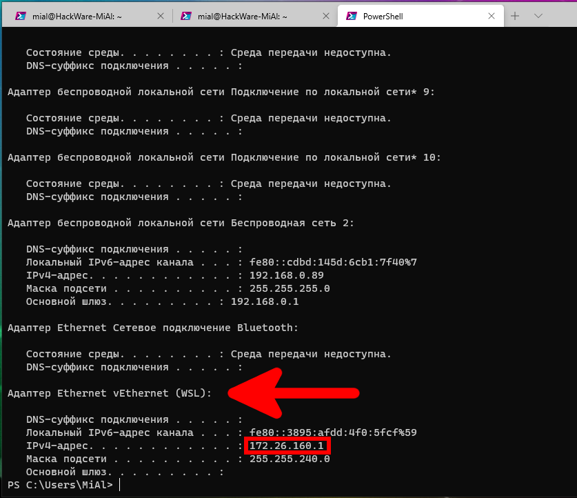 IP адрес Windows это 172.26.160.1.