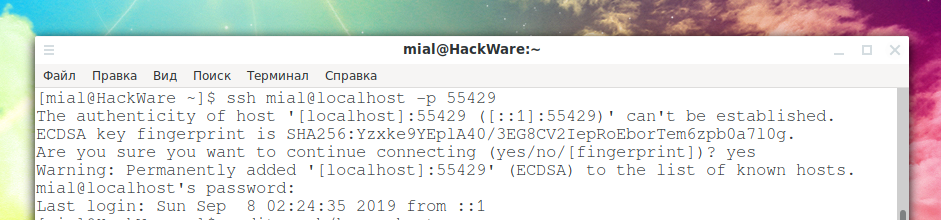 Давайте попробуем теперь вызвать ssh secondhost из командной строки.