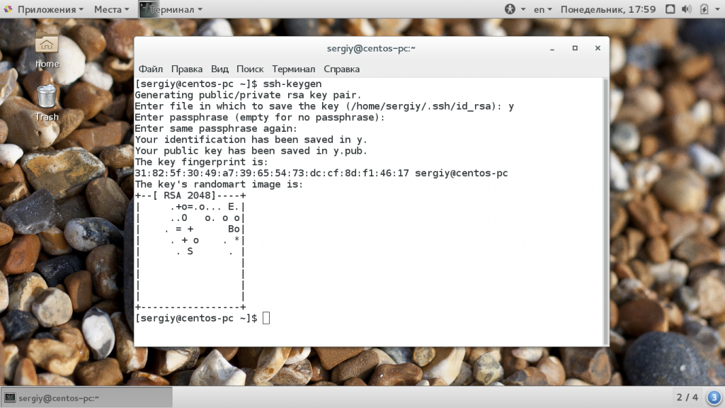 Чтобы создать ключ, нужно ввести команду . В примере мы будем использовать самую распространенную папку для ключей, которая находится в домашней папке пользователя: или ее укороченной версией :