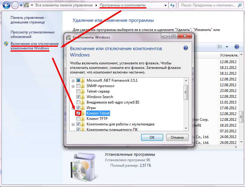 Если это не помогло, то открываем меню «Пуск/Панель управления/Программы/Программы и компоненты» и нажимаем на «Включение или отключение компонентов Windows».