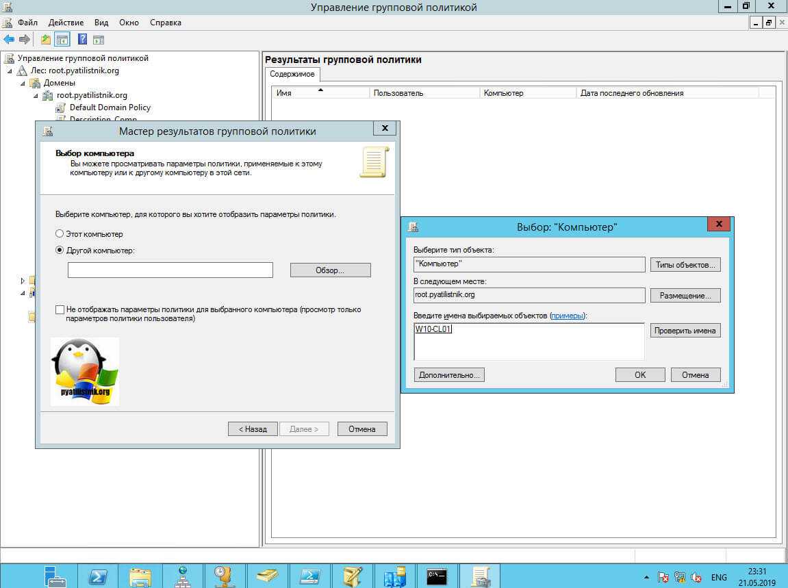 Выбираем нужный компьютер, к которому мы хотим проверить применение политики.