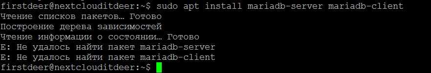 Рис.-1 — Не удалось найти пакеты mariadb-server и mariadb-client.