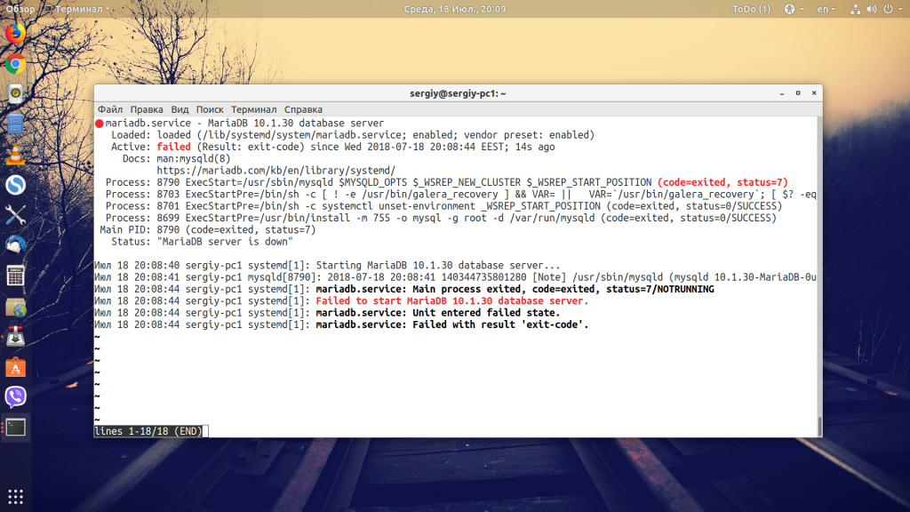 После установки сразу проверим статус MariaDB. (Рис.7)