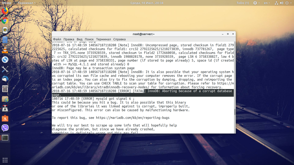 InnoDB is probably the MariaDB component that most frequently causes a crash. In the error log, lines containing InnoDB messages generally start with «InnoDB:».