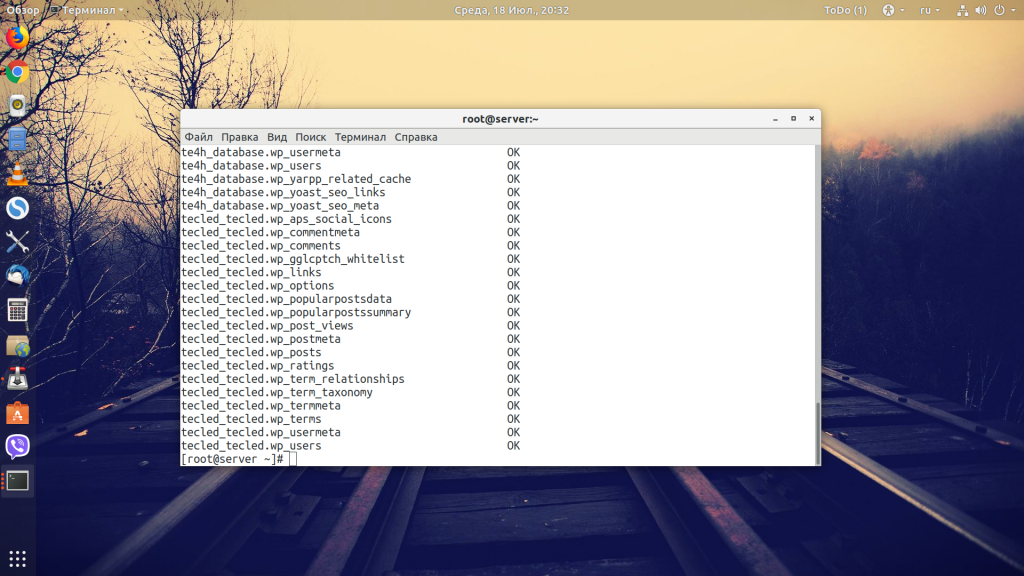 Ошибок не будет и сервис запуститься. Нам остается только исправить таблицы. Для этого можно воспользоваться инструментом mysqlcheck: