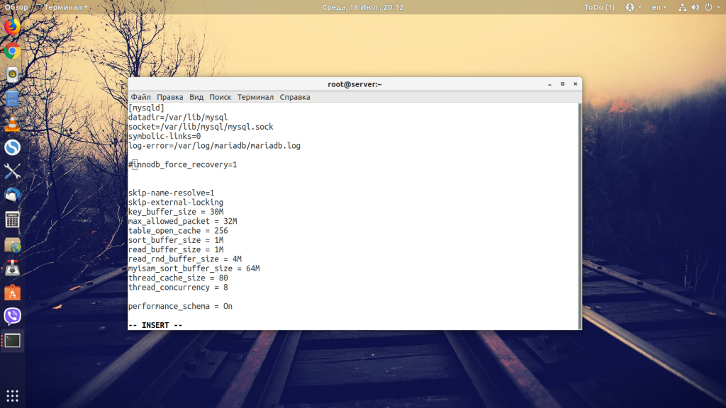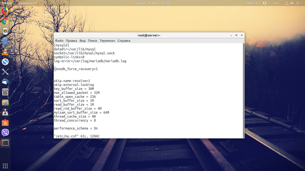 Для этого нам придётся отредактировать главный конфигурационный файл — my.cnf: