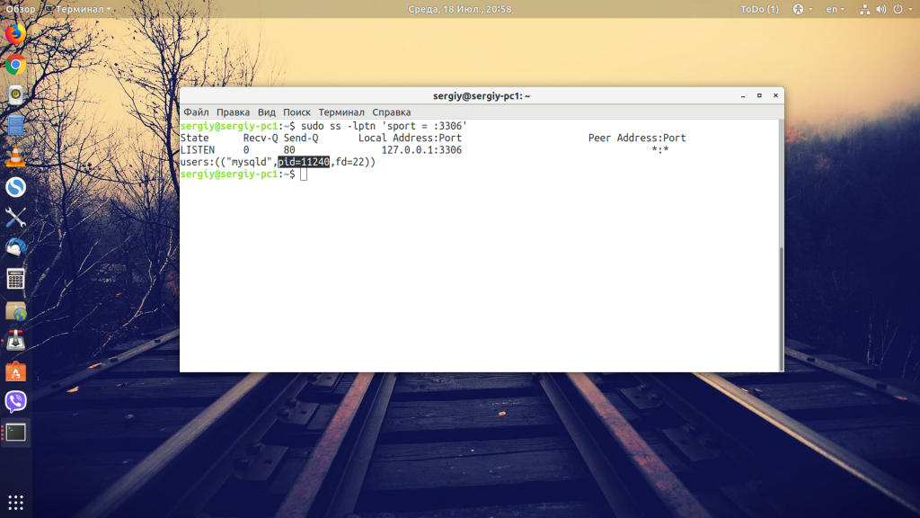 MySQL может использовать файловый сокет Linux или же сетевой сокет, тогда база данных будет доступна другим программам на порту 3306. Если сейчас уже запущен другой процесс mysql или какой-либо другой процесс занимает этот порт вы получите ошибку Address already in use. Чтобы ее решить смотрим какой процесс использует порт: