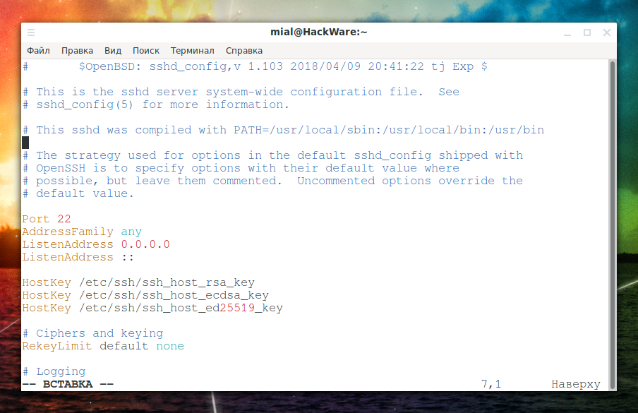 Также обратите внимание, что с ListenAddress обязательно должен быть указано имя хоста (адрес) ИЛИ порт. Можно указать отдельно имя хоста (адрес), можно указать отдельно порт, а также можно указать их вместе
