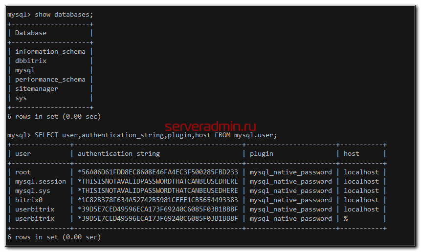 Идем в консоль mysql и выбираем там таблицу для восстановления. В моем примере это будет таблица b_user_access из базы sitemanager. Смотрим, заполнена ли таблица данными.
