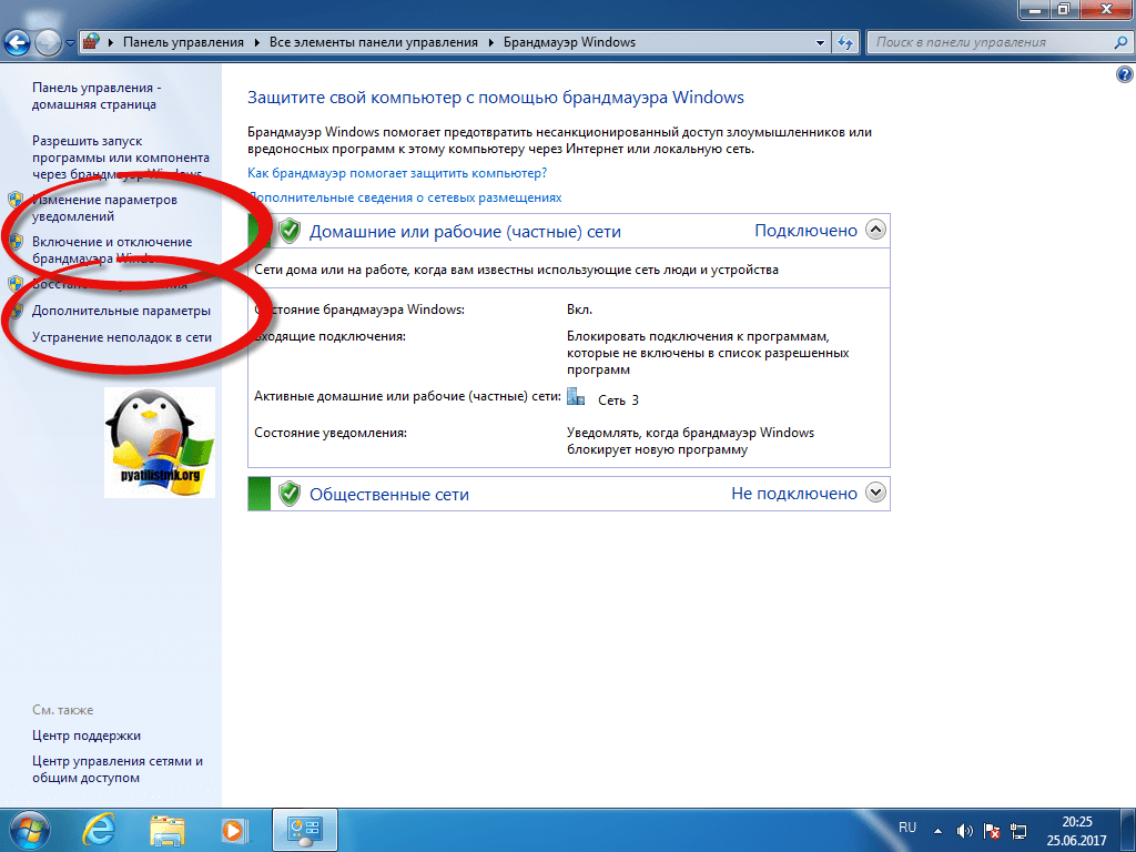 Если вам нужно быстро протестировать 443 соединение, то я вам советую полностью отключить брандмауэр, особенно если подпирает время, для этого открываем соответствующий пункт.