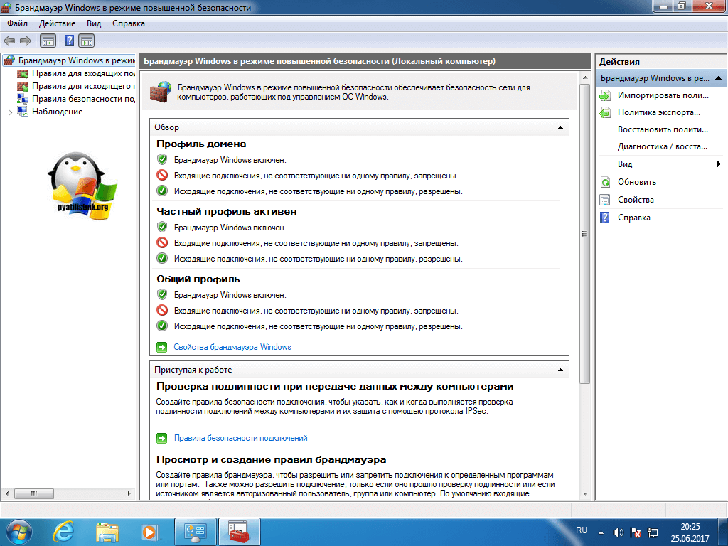 А теперь правильный вариант, перейдите в дополнительные параметры фаэрвола. Вы попадете в повышенный режим безопасности, именно тут можно открыть порт 443 windows.