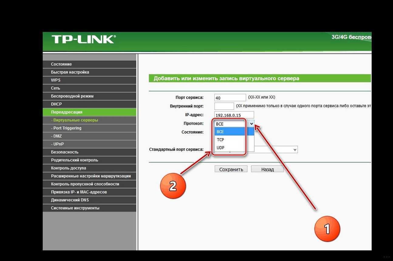 Если выбрали второй вариант, то указываем протокол TCP или UDP (для большей безопасности)