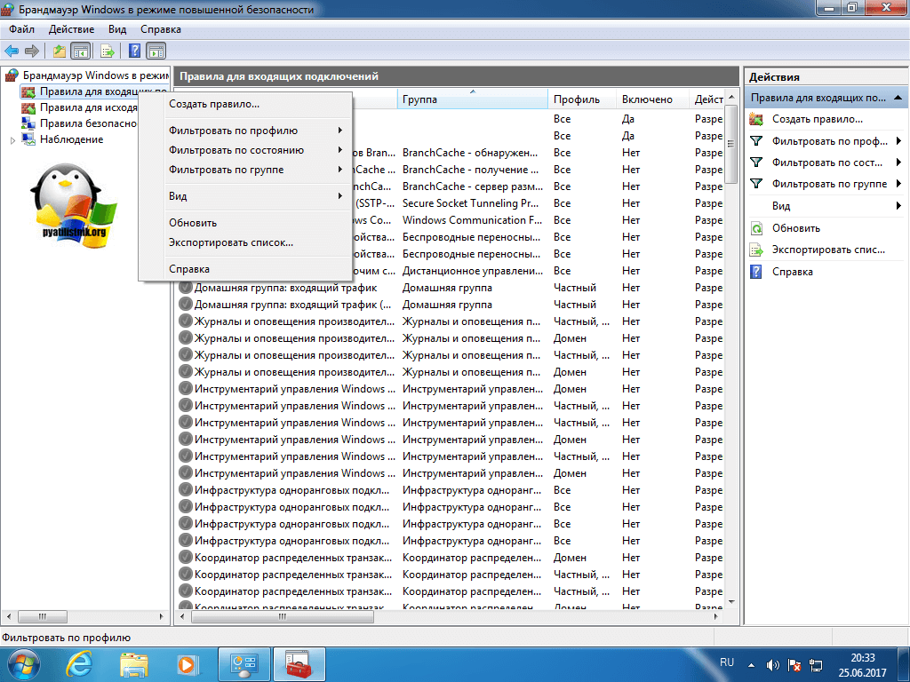Когда вы набьете руку и вам надоест щелкать однотипные окна в брандмауэре Windows или вы захотите, все автоматизировать, то вам в этом поможет, командная строка запущенная с правами администратора. Вам необходимо выполнить такую команду: