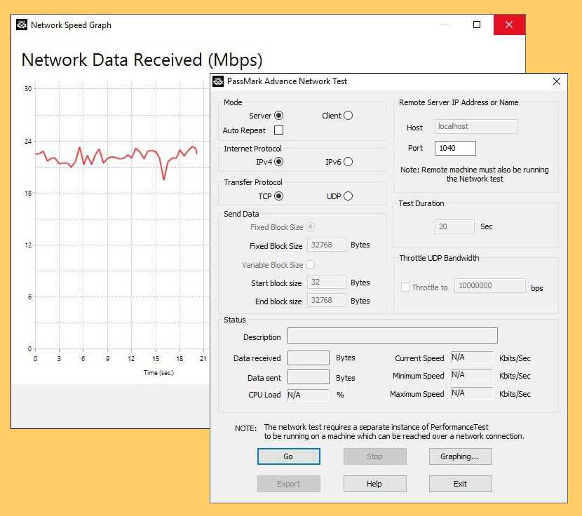 Тест производительности сети будет работать с любым типом соединения TCP / IP. Включая Ethernet, коммутируемые модемы, ADSL, кабельные модемы, локальные сети (LAN), глобальные сети (WAN) и беспроводные сети (WiFi). Программное обеспечение было оптимизировано, чтобы использовать минимальное количество процессорного времени, что позволяет сравнивать даже высокоскоростные гигабитные соединения Ethernet. Пользователи имеют возможность изменять следующие параметры теста.