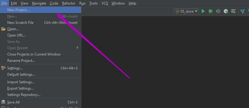 Виртуальную среду можно создать при создании нового проекта. Для этого нужно зайти по следующему пути: