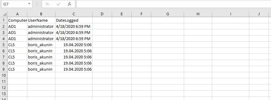 Легче всего такой скрипт запускать на компьютерах пользователей, по событию входа в систему. На примере ниже я экспортирую эти данные в единый, для всех пользователей, файл CSV расположенный в доступности для пользователей:
