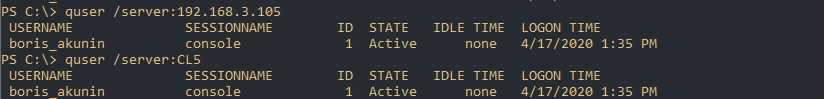 Quser так же может работать удаленно используя следующий синтаксис: