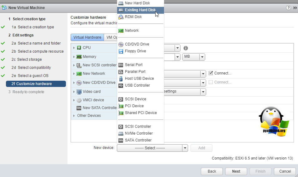 Из выпадающего списка выберите нужную для вас версию совместимости оборудования для виртуальных машин ESXI.