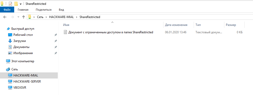 Доступ в папку ShareRestricted получен: