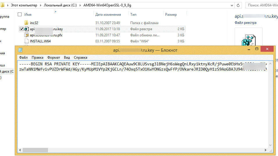 В папке с дистрибутивом OpenSSL вы обнаружите файл key.pem, он нам нужен будет для следующего этапа.