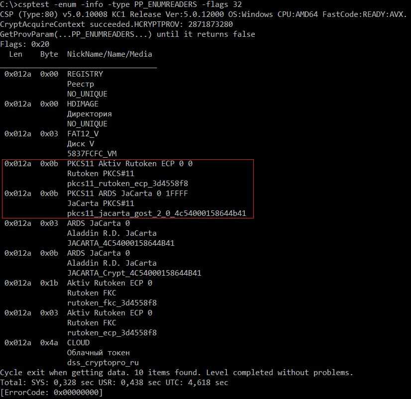 | Рутокен ЭЦП PKI | Не поддерживается | Пассивный(Режим CSP) | Пассивный(Режим CSP) | Пассивный(Режим CSP) |